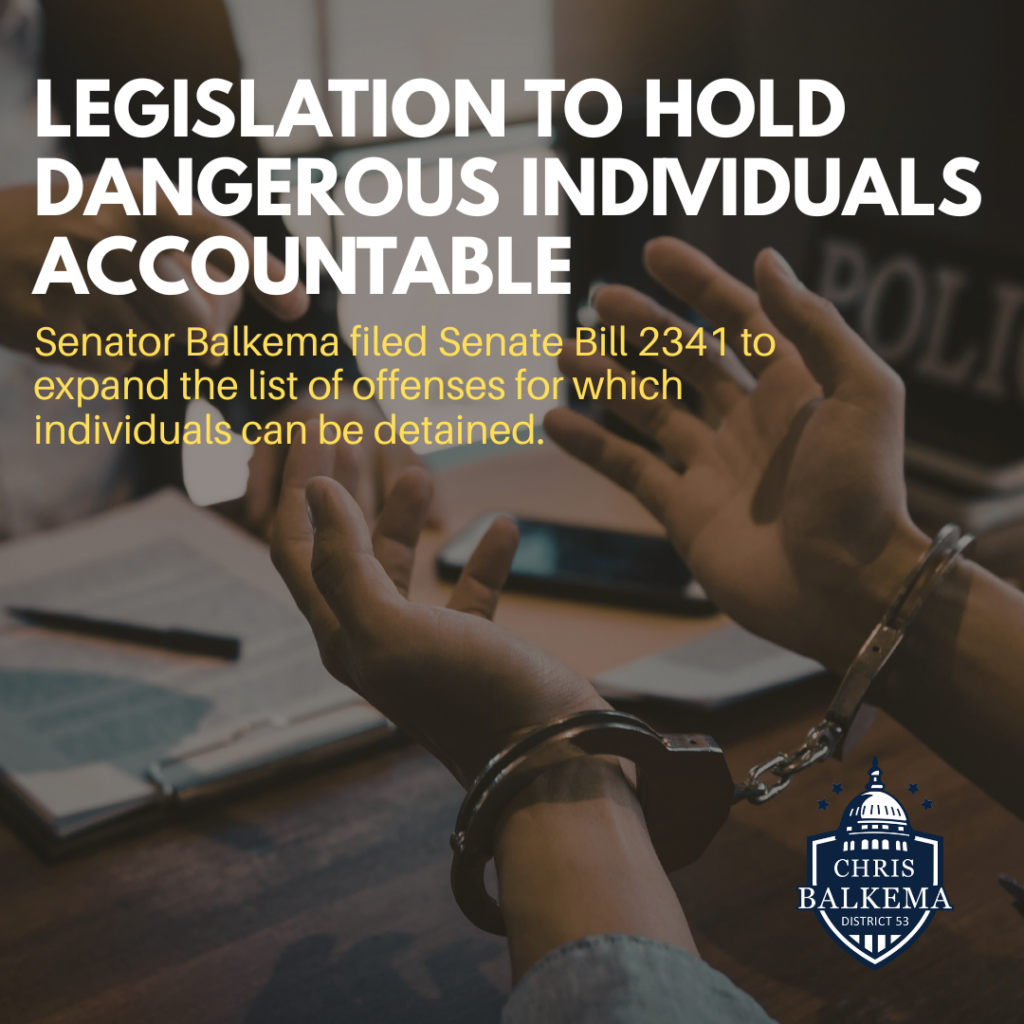 Senator Balkema filed Senate Bill 2341 to expand the list of offenses for which individuals can be detained. This legislation, inspired by the Livingston County State’s Attorney, includes a third DUI offense and the delivery or manufacture of lethal drugs in amounts below what would qualify as a Class X or Class 1 felony. He has also proposed an amendment to include fentanyl possession, though it has not yet moved out of assignments. His goal with this bill is simple: to strengthen public safety and ensure dangerous individuals are held accountable.